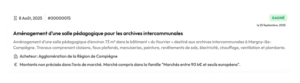 Et en plus, les marchés sont publiés publiquement : cela permet de montrer son activité, d'alimenter ses réseaux sociaux, ou de renforcer son référencement web en valorisant les projets remportés.